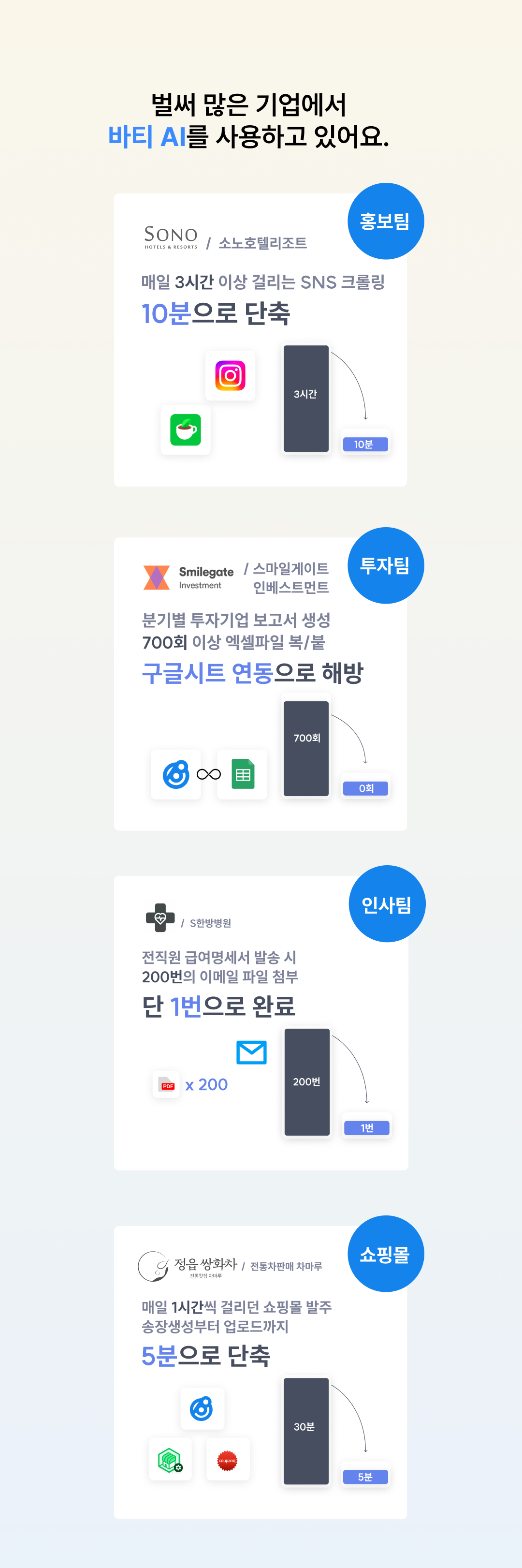 단순반복업무는 바티AI가 자동화 해드릴게요!